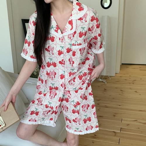 [옷자락] 여자 편안한 데일리 귀여운 체리 반팔 홈웨어 세트