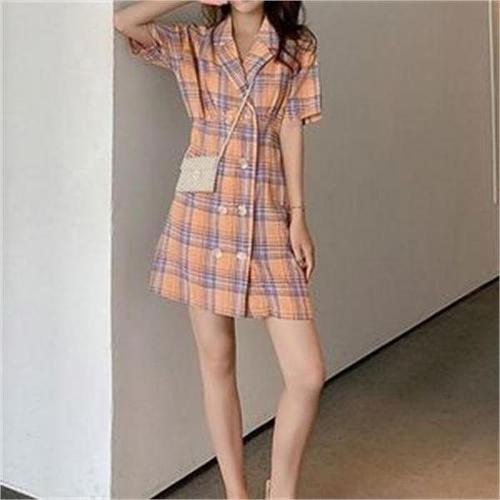 [XB520L06]발랄한 더블버튼 체크 원피스