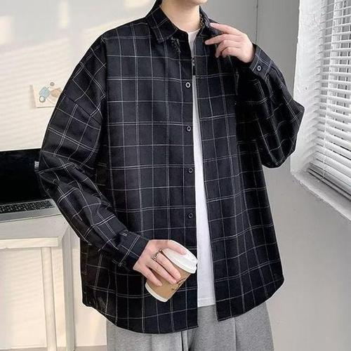 [에이치플러스몰]트리플컬러시즌 남성용 내추럴룩 일상용 체크패턴 맨즈 롱슬리브 드레스셔츠