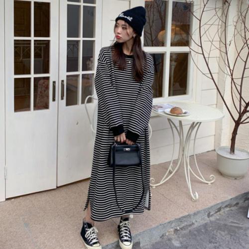 원피스 롱 빅사이즈 겨울 약기모 도톰한 스트라이프 WFK5SWS