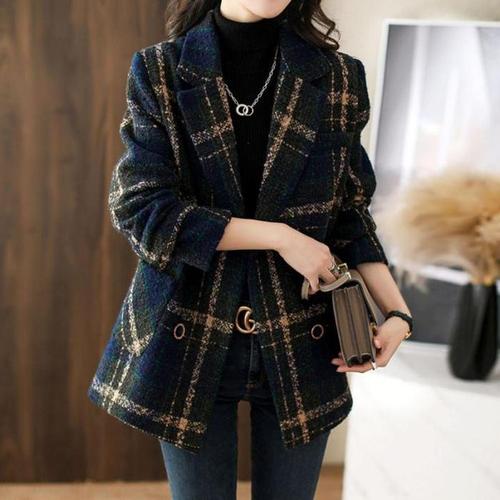 여자 아우터 하프기장 체크 자켓 간절기 모직 루즈핏 WFLQ8C3