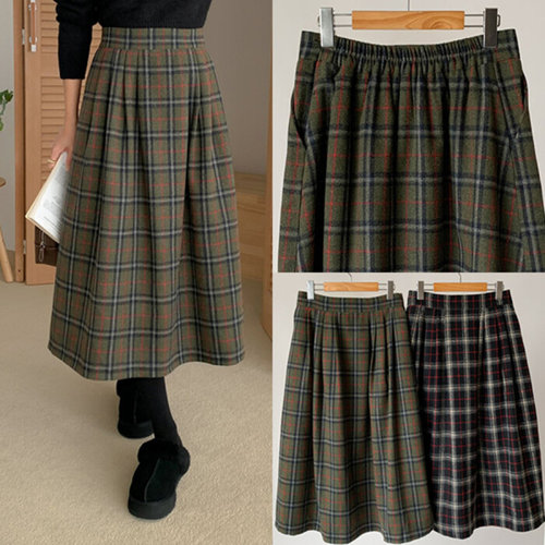 미니 스커트 여성 하객 레드 체크 가을 겨울 빈티지 롱 슬림핏 A라인 admr4