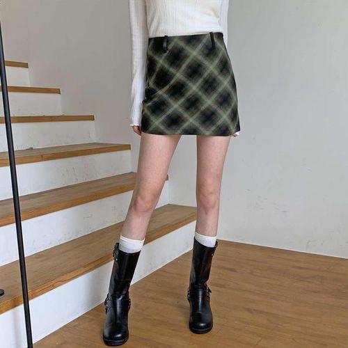 [신상오픈런]여성 레이온 스판 체크 패턴 H라인 미니 스커트
