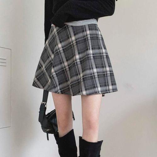 [신상오픈런]여성 레이온 체크 패턴 뒷밴드 A라인 미니 스커트