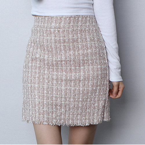 파라노말샵 / 윙클 트위드 체크 밴딩 미니 스커트