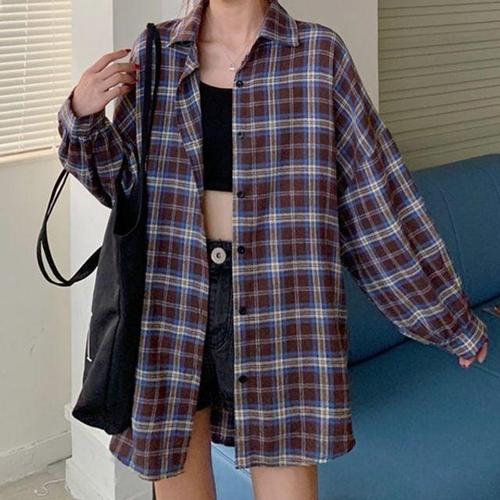 남방 봄가을 루즈핏 루즈핏 체크셔츠 대학생 여자 캐주얼