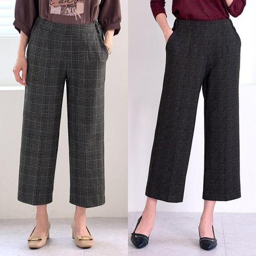 패션 엄마 바지 체크 정장 바지 빅사이즈 고탄력 중년 여성 캐주얼 바지 여자 와이드 팬츠 LCC
