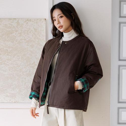 [WPBG]리버시블 체크 퀼팅 패치 점퍼_3color