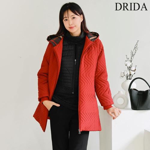 드리다 여성 겨울 체크 배색 빅사이즈 누빔 후드 패딩 점퍼 50-60대 중년여성 엄마옷 선물 모임