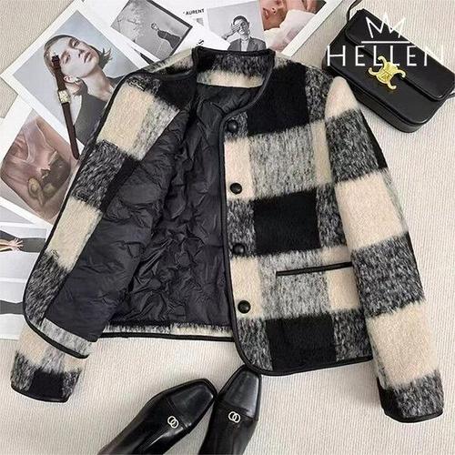 [헬렌]헬렌 겨울 하객룩 체크 자켓 숏 코트 퀄팅 안감 앤키