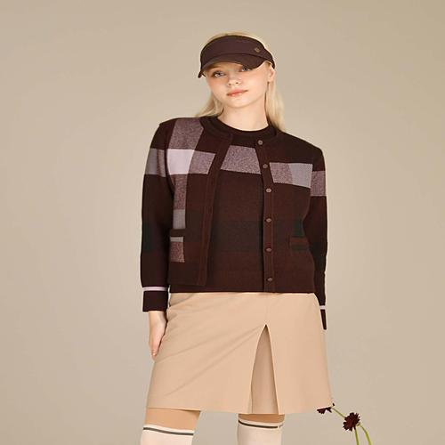 닥스 골프 여성 24FW 가격인하ONLINE EXCLUSIVE 와인 체크 울혼방 니트베스트 DNSW4D901D3