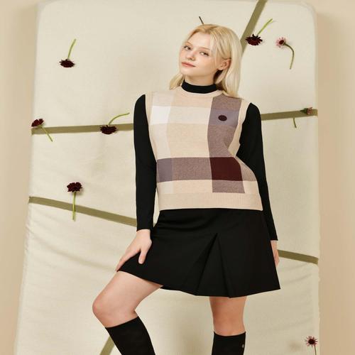 [팬텀]골프 여성 윈도우 페인 체크 심플 라운드 니트베스트_BP