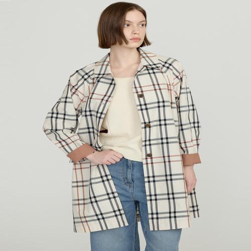 닥스 여성 베이지 소매 체크 배색 스트랩 면 하프 맥코트 (DLCO5B201I2)