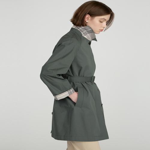 닥스 여성 카키 소매 체크 배색 스트랩 면 하프 맥코트 (DLCO5B201K2)