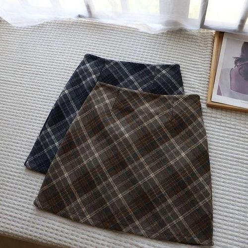 [옷자락]여성 체크무드 울혼방 미니스커트
