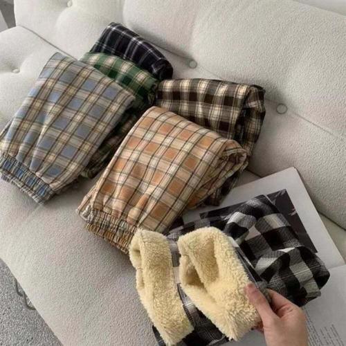 [오너클랜]인기상품 기모 조거팬츠 겨울 캐주얼 뽀글이 체크 슬랙스 따뜻한 바지 [WFLLNCK_260305]