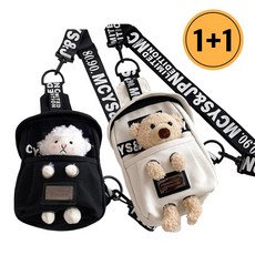 트래블유 캔버스 미니 크로스백 핸드폰가방 여권 초등학생 청소년 캐주얼 슬링백 인형탈부착 가능