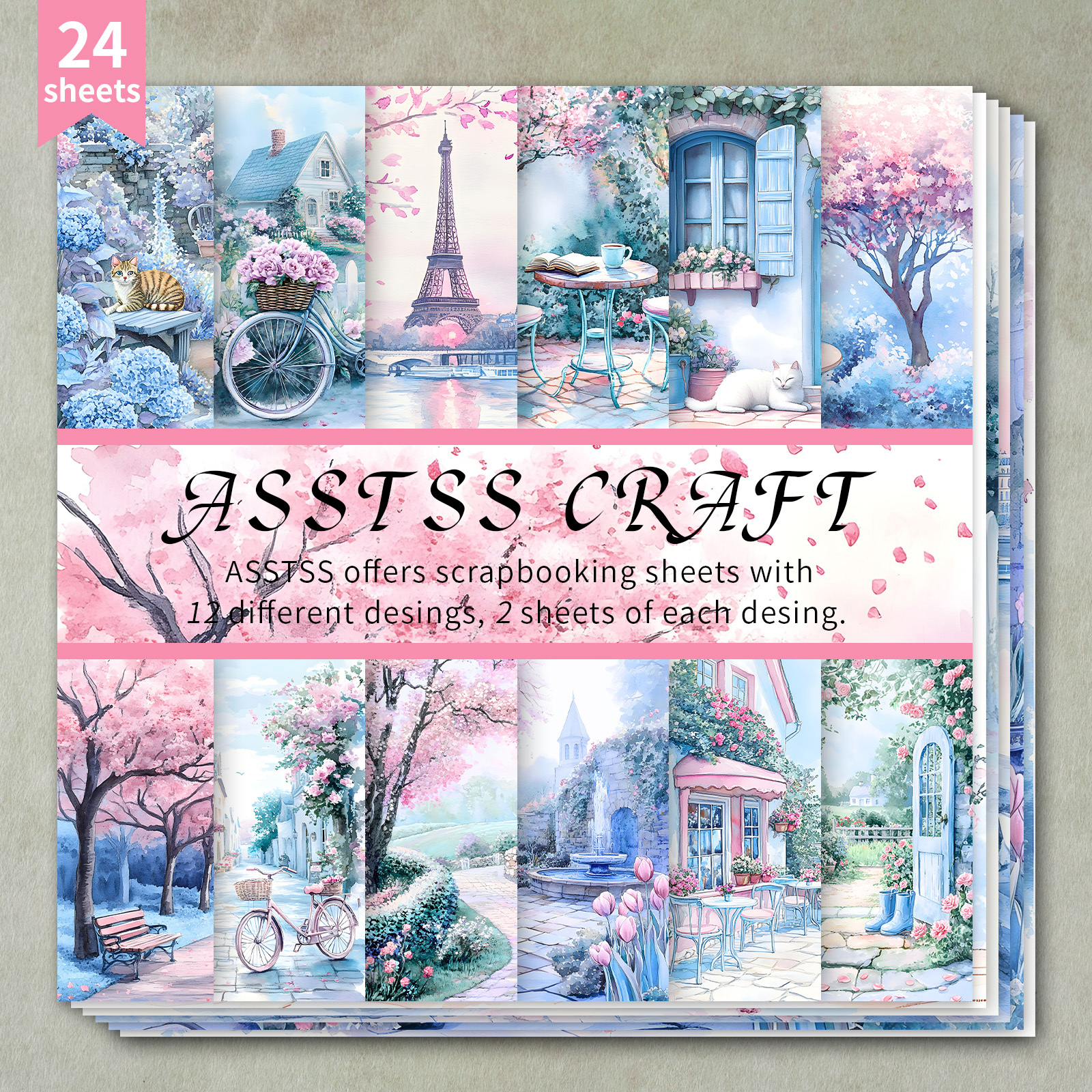 TEMU 24장 ASSTSS 스크랩북용 종이 패드, 로맨틱 벚꽃 나무 배경지, 두꺼운 카드스톡, 불렛 저널링, 콜라주 아트, 카드, 스크랩북 & 공예용, 6"x6" 플로럴 디자인 팩