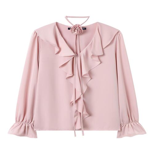 [미니멈에브리데이][미니멈 에브리데이]러플 플라워 초커 타이 세트 블라우스 (EB4BA002D)