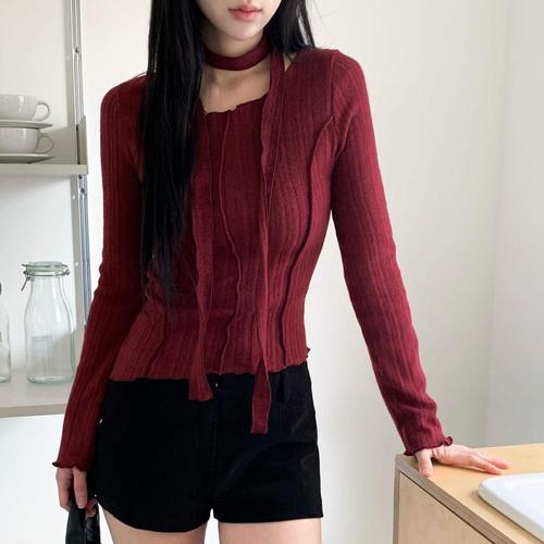 [다잇템]여자 탱크 옆셔링 초커 슬림 긴팔티셔츠