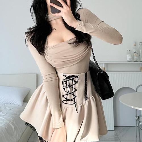 여자 스퀘어넥 옆셔링 슬림 초커 긴팔티셔츠_3