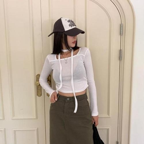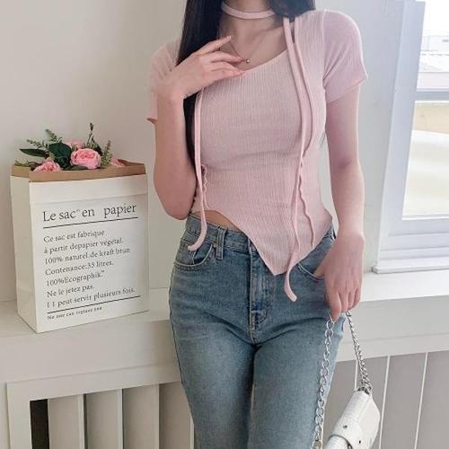[신상오픈런]|KHT7255|레파러 티셔츠 여성 컷팅 스프링 슬림핏 초커 끈_18175163_597559