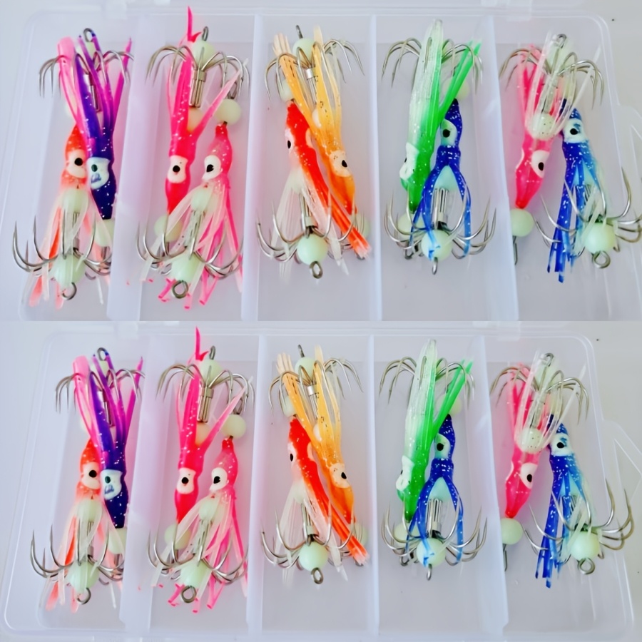 TEMU 20개/박스 소프트 오징어 낚싯바늘 - 날카로운 끝, 바다 및 민물 낚시용, 오징어 루어와 호환, 바닷물/민물용, 오징어 낚시 루어용 소프트 오징어 낚싯바늘