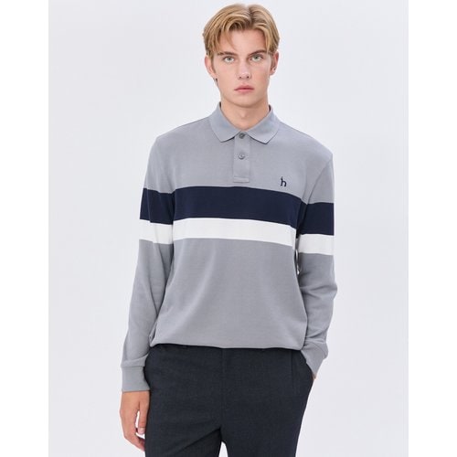 헤지스 [24FW] [스테디셀러] 그레이 컬러배색 면 긴팔카라티셔츠 WHTS4D533G2