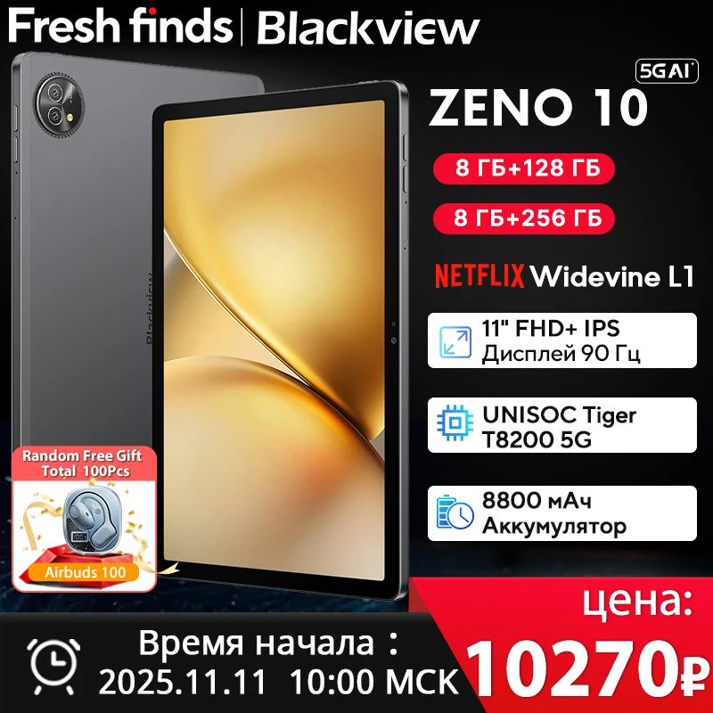 【세계 최초 공개】블랙뷰 제노 10 5G AI 태블릿 11인치 FHD+ 90Hz 디스플레이 와이드바인 L1 8800mAh 쿼드 스피커 안드로이드 15 패드 PC