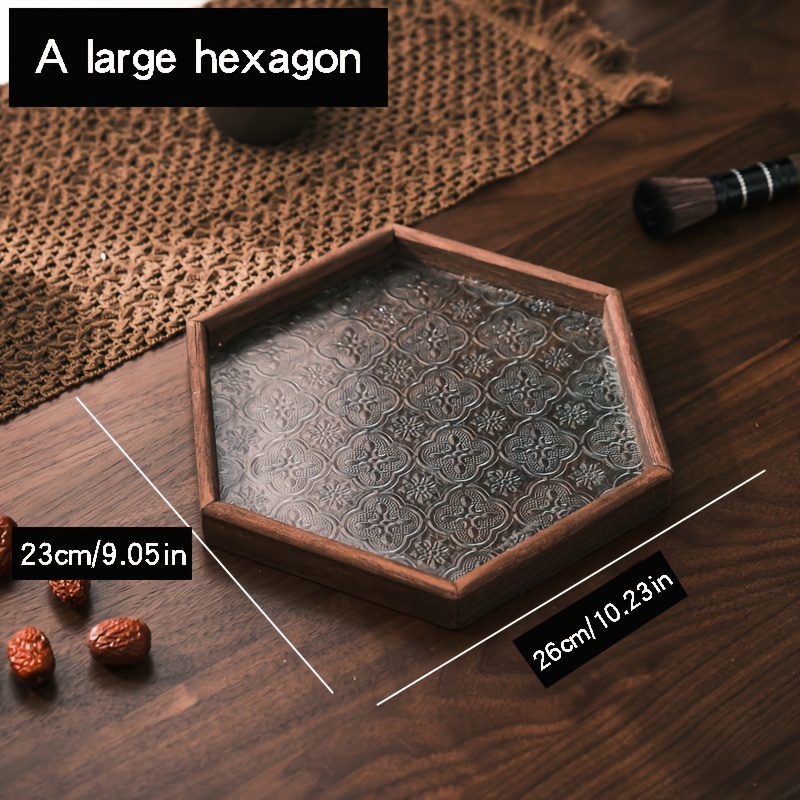 TEMU 빈티지 천연 나무 & 유리 스낵 트레이 - 육각형 오일 러브 카우리 스낵 디쉬, 기하학 패턴이 있는 러스틱 직사각형 티 트레이, 쿠키 및 견과류용 홈 데코