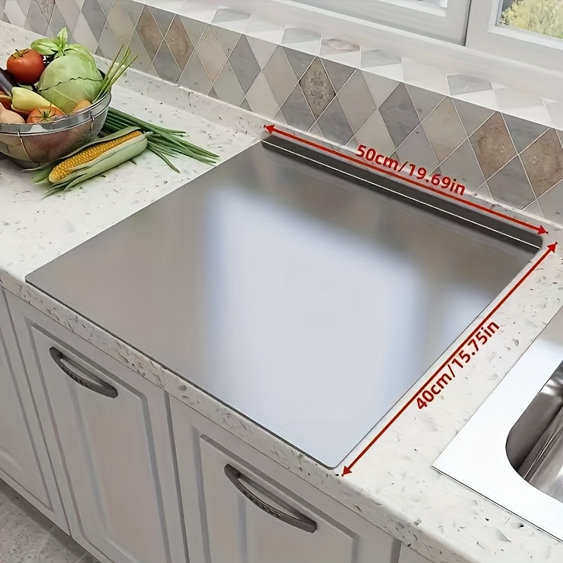TEMU 주나시 304 식품용 스테인리스 도마 세트 – 설거지기 안전, 내구성 & 미끄럼방지 기능 | 다양한 사이즈의 카운터탑 보호를 위한 키친/베이킹/캠핑 사용에 적합한, 프로페셔널 셰프 도구, 홈쿠킹 필수템, 미끄럼방지 가장자리, 심플하고 고급스러운 주방 액세서리, 녹슬지 않는 소재, 고품질 강철, 멀티퍼포즈 도마|식기세척기|식기세척기