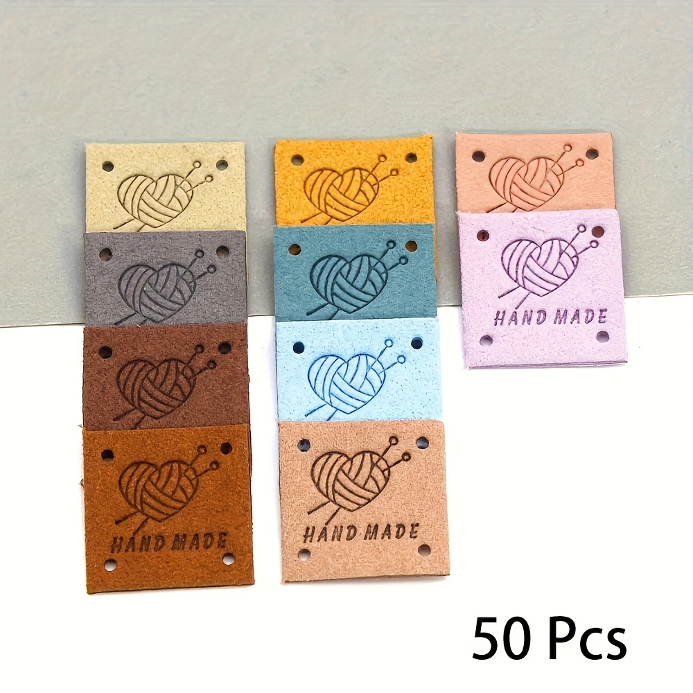 TEMU 50개 수제 하트 모양 라벨 - "수제" 인쇄 디자인, 합성 가죽 공예 태그, 수제, 니트, 액세서리 - 베이지, 블루, 옐로우, 핑크, 브라운, 블랙, 화이트, 공예 태그 | 인쇄 디자인 | 합성 가죽 태그, 수제 액세서리