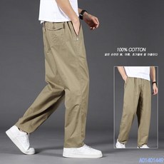 ZZL 남성 캐주얼 팬츠100% 면 슬랙스 스트레이트 팬츠 허리 밴드 남성 롱 팬츠라지춘추두껍다순면 밴딩 팬츠
