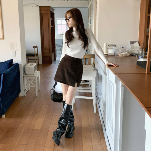 [옷자락] 여자 따뜻한 겨울 골덴 트임 미니 치마바지
