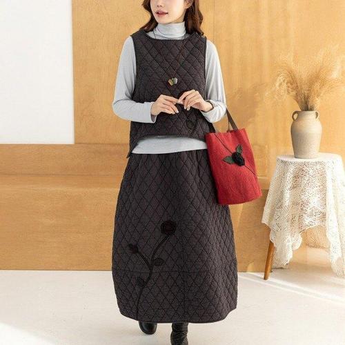 [초우즌][chowoosen]25FW 초우즌 다이아 자수 퀼팅 베스트+패딩스커트 2종