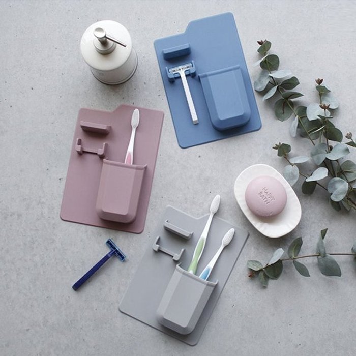 실리바스 욕실세트 치약걸이 칫솔걸이 면도기거치대 실리콘흡착, 1개, 그레이