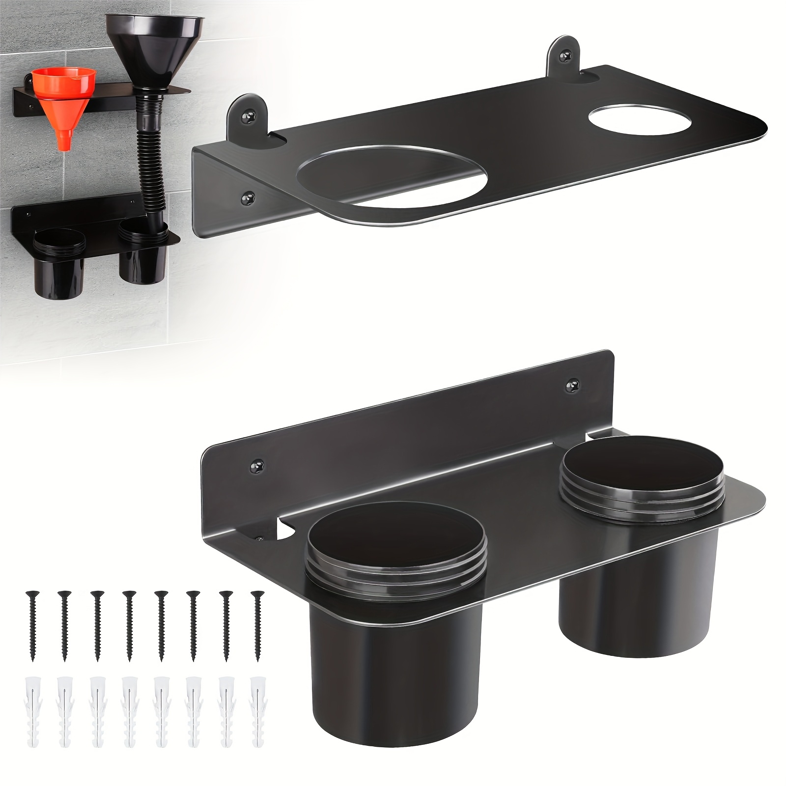 TEMU 엔진 오일 깔때기 세트, 이중층 오일 깔때기 거치대, 오일 깔때기 보관함, 자동차 오일 깔때기 키트, 벽걸이 보관 홀더 + 고밀도 탈착식 드립 컵 2개 포함, 자동차 수리장, 트레일러, 공구 보관소용 사전 구멍 뚫림