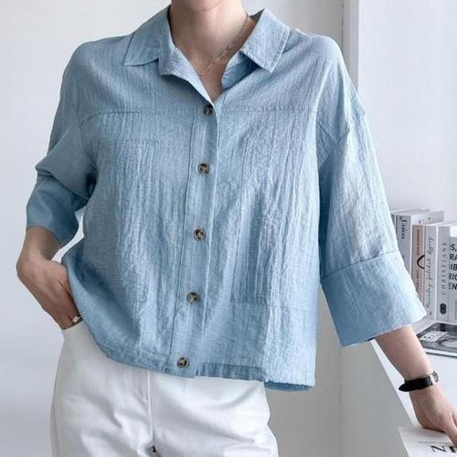[다잇템]여성 카라넥 칠부반팔 주머니 밑단스트링 남방