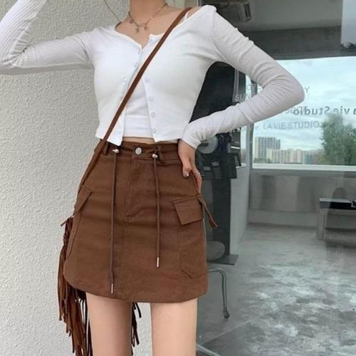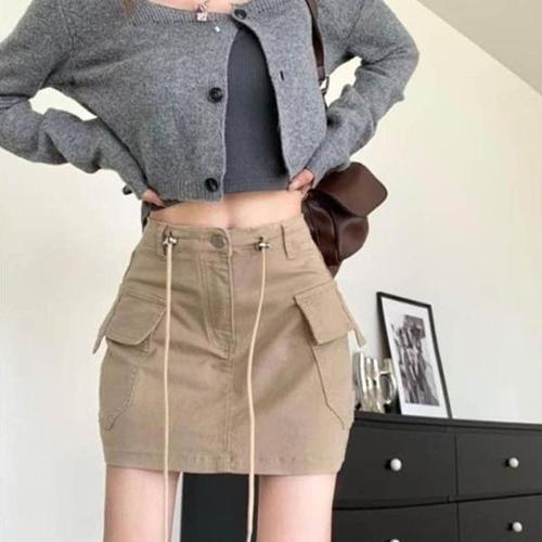 [엄지척]여성 카고 미니스커트 허리 스트링 빈티지 숏 스커트_19952911_667501
