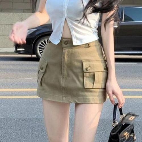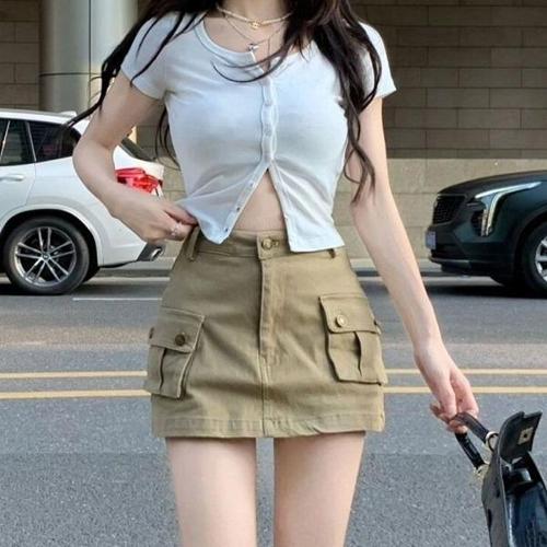 플레어스커트 y2k 숏 미니스커트 레트로 카고 포켓 여성 예쁜 치마 WFJHN9N