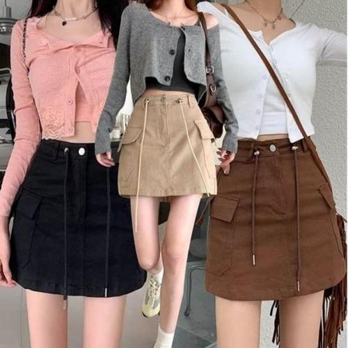 [엄지척]여성 복고 카고스커트 건빵 미니스커트 허리 스트링_19958272_667501