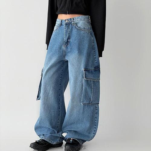 H스타일(JN)1000카고와이드데님팬츠 봄 여성 청바지 데님팬츠 와이드팬츠 건빵 통바지 진 슬랙스