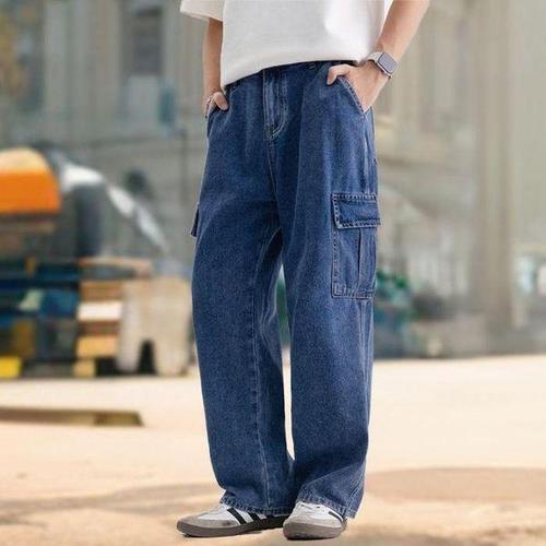 [셀러허브_여성트랜드패션]카고 바지 남자 진청 통큰 와이드청바지 데님팬츠
