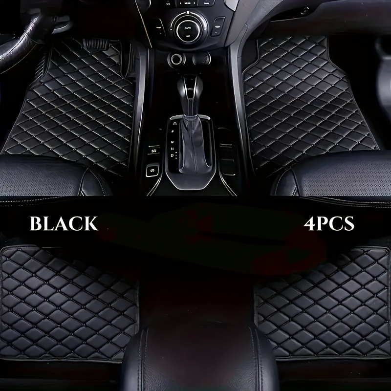 TEMU 럭셔리 PU 가죽 자동차 바닥매트 4종 세트, 미끄럼 방지 및 내구성 강화, 전후면 차량용 바닥매트, 대부분의 차종에 적합