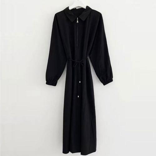 [오너클랜]인기상품 앞지퍼 카라 여성 긴팔 캐주얼 롱 프론트 심플 원피스 [WE704B6_250919]