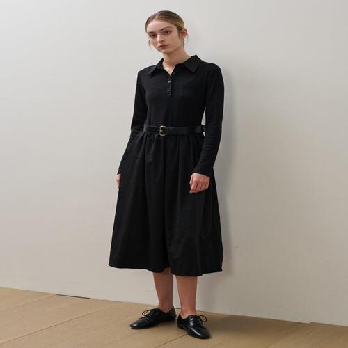 [르샵]카라넥 버튼업 허리 끈 롱 원피스 (DP4OW005A)
