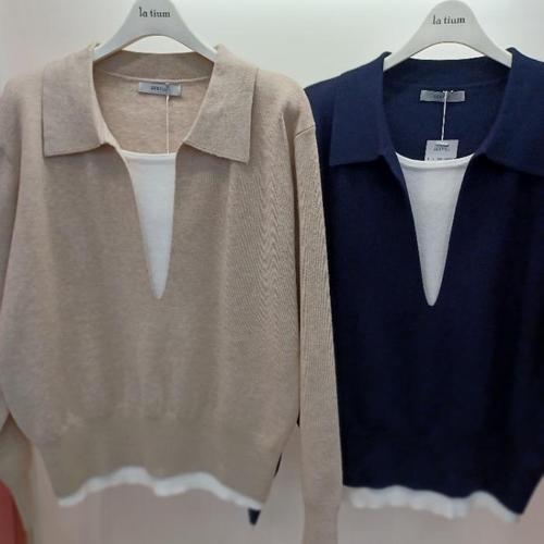 [라티움]Destijl HC06 봄느낌 앞민소매 레이어드 깔끔한 카라 니트티 D2613sw07B (44891568)