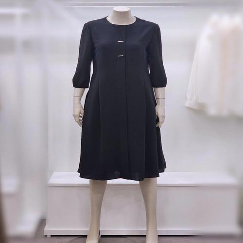 [프렐린]RJO261020 소매 배색 블랙 노카라넥 원피스