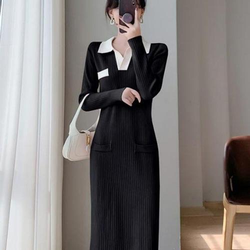 카라 니트 배색 2Color 원피스 WD54904