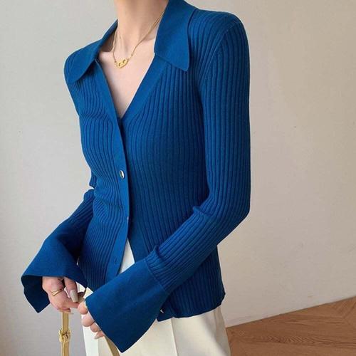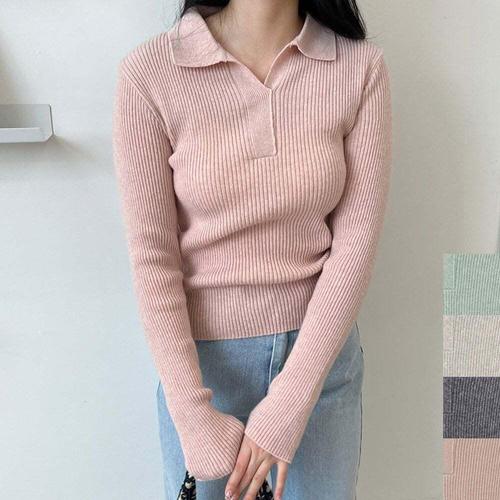 [셀럽하우스]여성 ETFR3153 골지 패션 카라 편안한 니트 슬림 티셔츠